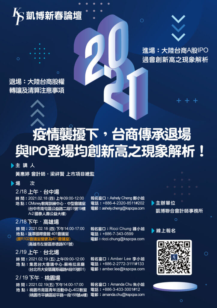 變更場地 後頁 → https://www.kspcpa.com/wp-content/uploads/2021/01/變更場地-724x1024.jpg https://www.kspcpa.com/wp-content/uploads/2021/02/0205修改-【2021年2月凱博新春論壇】疫情襲擾下,台商傳承退場與IPO登場-均創新高之現象解析!-724x1024.jpg
