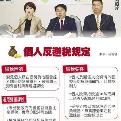 立法院第9屆第1會期第20次會議今(12)日三讀通過建立反避稅制度之「所得稅法」 […] 財政部賦稅署:反避稅條款修正案(新聞稿) This entry was posted on 2016-07-12